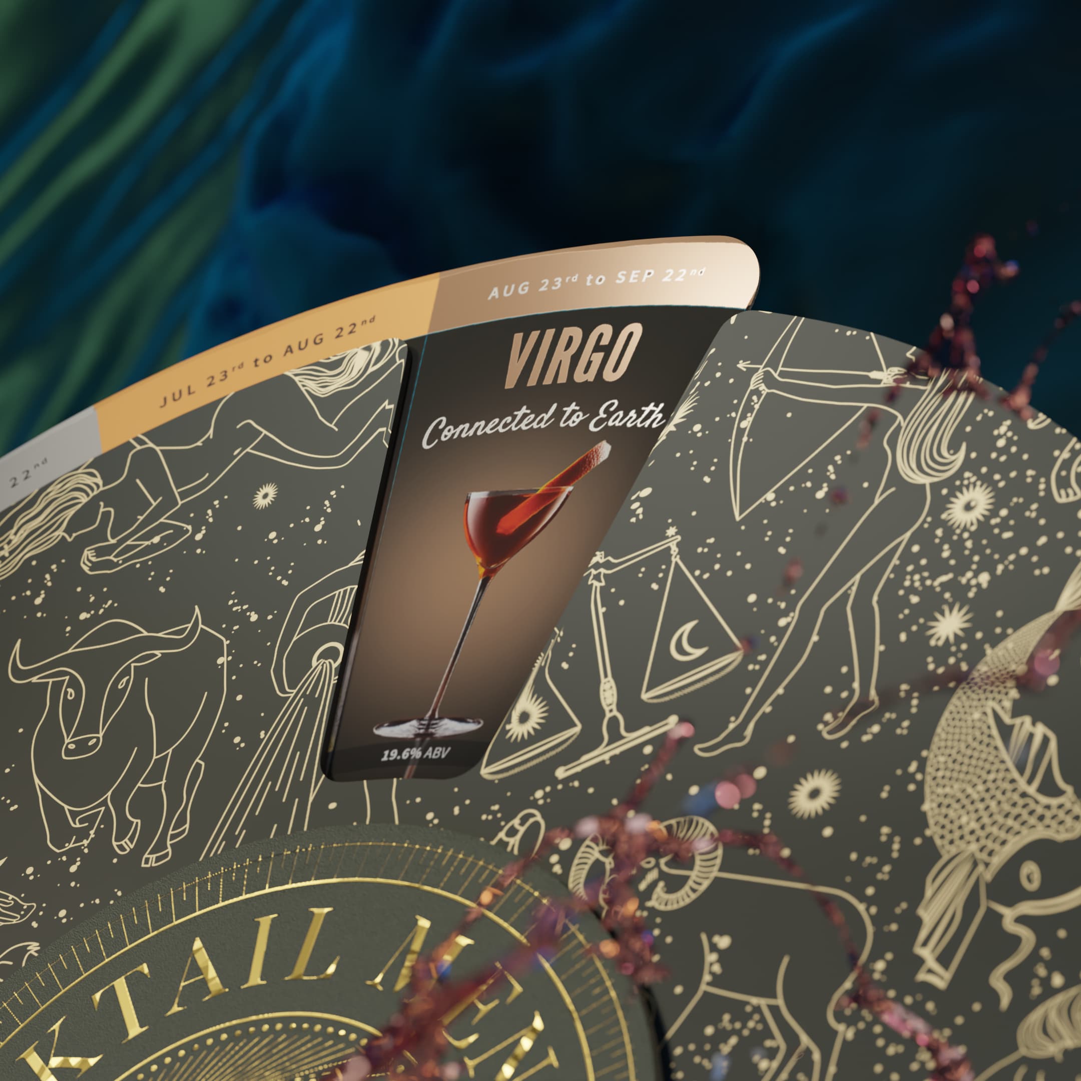 01: Seamlessly integrating 12 zodiac-inspired cocktails into the menu design.