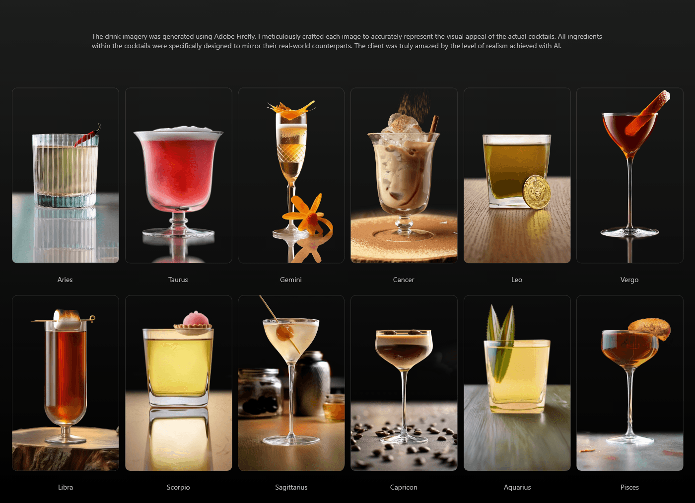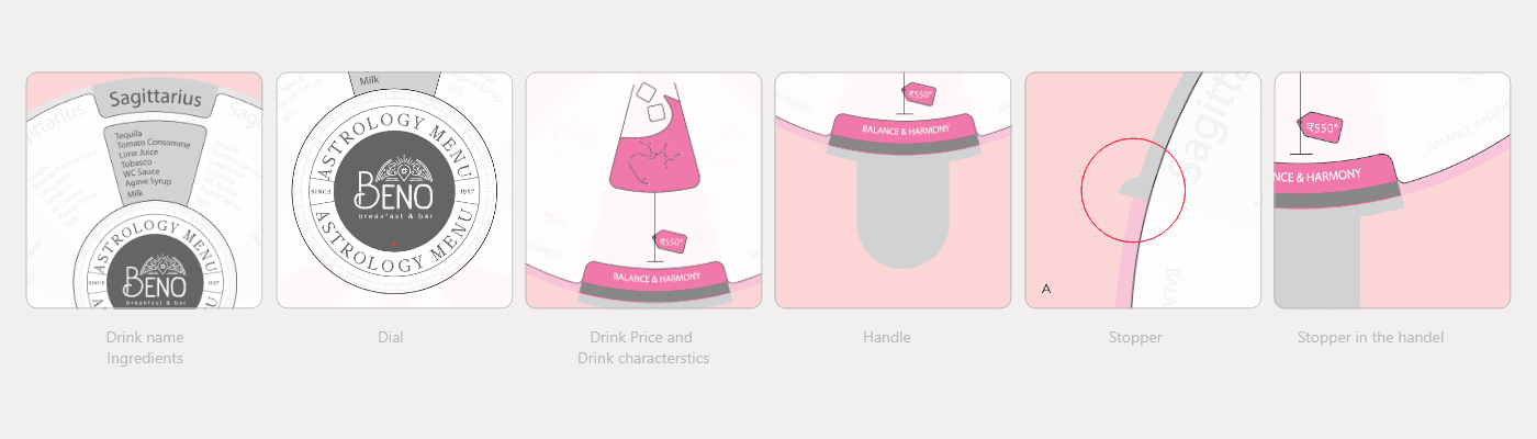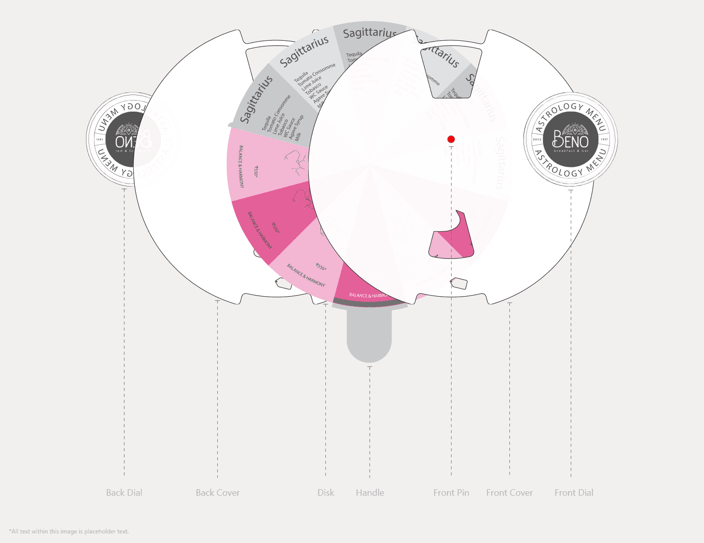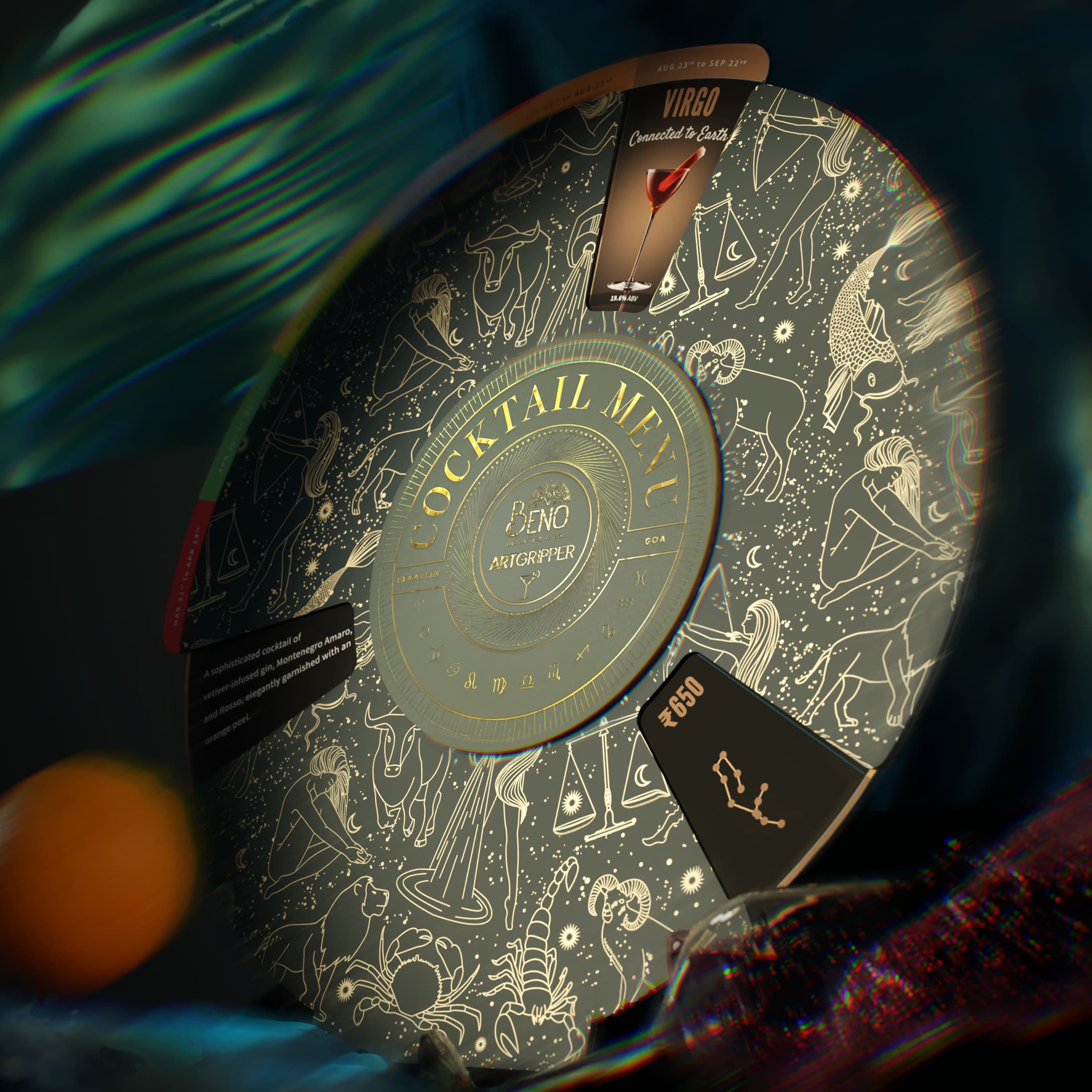 Goal: Visually appealing, user-friendly menu reflecting Beno's brand & seamlessly integrating 12 zodiac-themed cocktails.